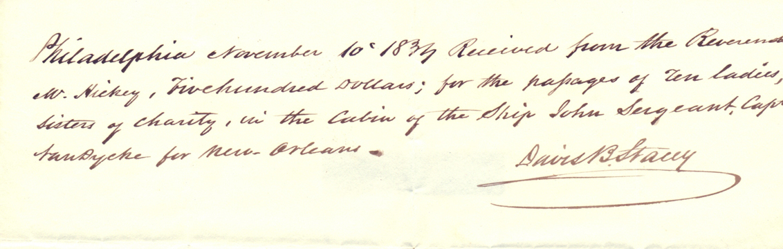 (Image of Sisters travel receipt used with permission of the Daughters of Charity Provincial Archives)