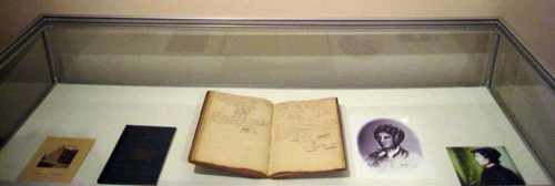Photos and artifacts of Sr. Mary Gonzaga Grace and Gonzaga Home. Sr. Mary Gonzaga is at the upper left. Beneath her is an image of the Sisters who served at Satterlee Hospital in West Philadelphia during the Civil War. In the center are pages from a handwritten life of Sr. Mary Gonzaga. On the far right is an image of Gonzaga Home.