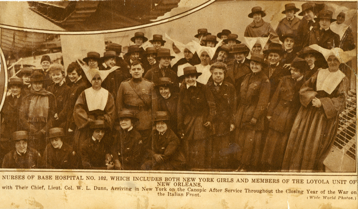 The call came in the summer of 1918. when the unit, formally known as Base Hospital 102, was organized and readied to go to Vicenza, Italy. The chief surgeon, Dr. Joseph Danna, was Dean of the Medical School at Loyola University in New Orleans; he had worked with the Daughters at both Charity Hospital and Hotel Dieu Hospital. Because of his ties with Loyola University, Base Hospital 102 was also known as the Loyola Unit.