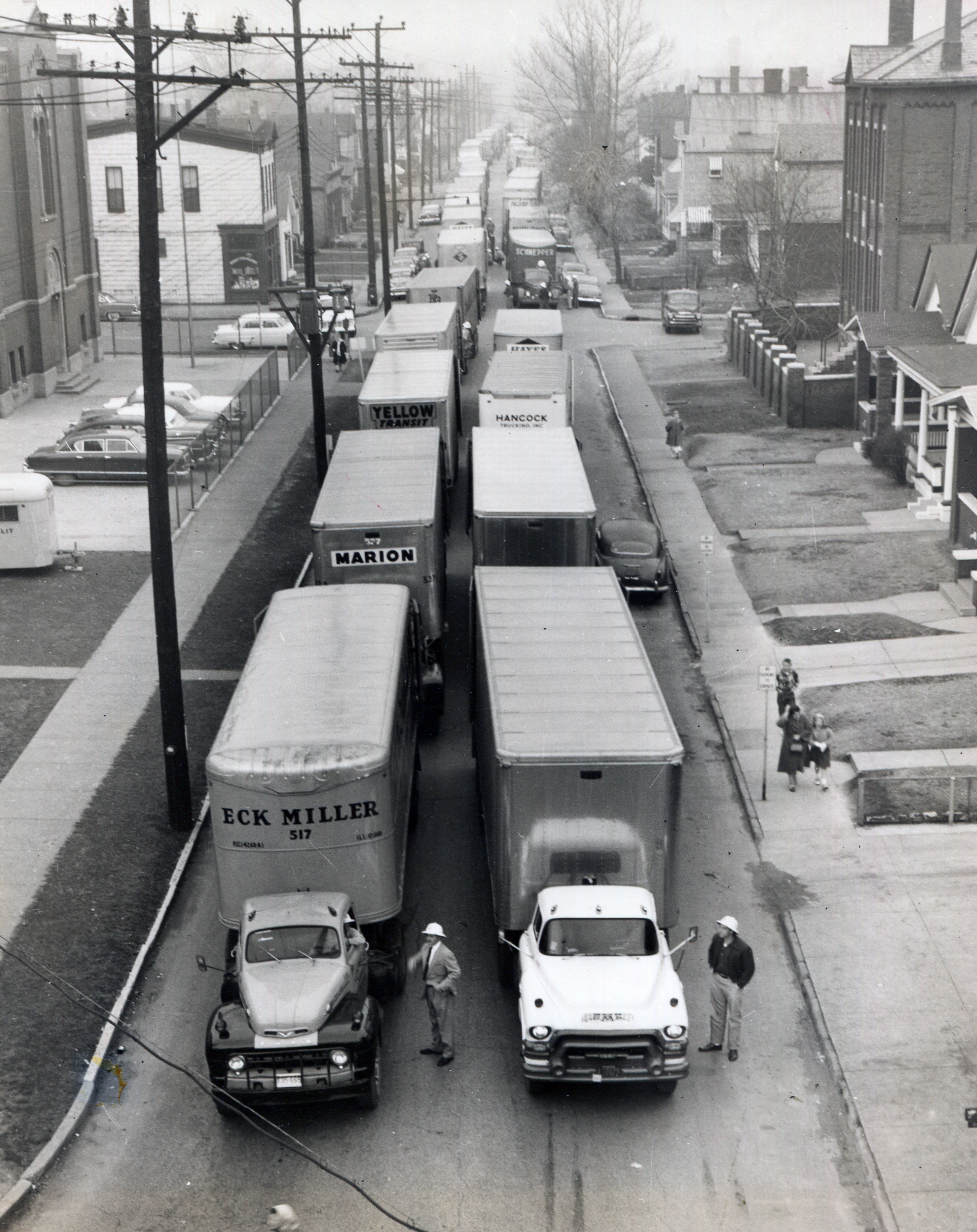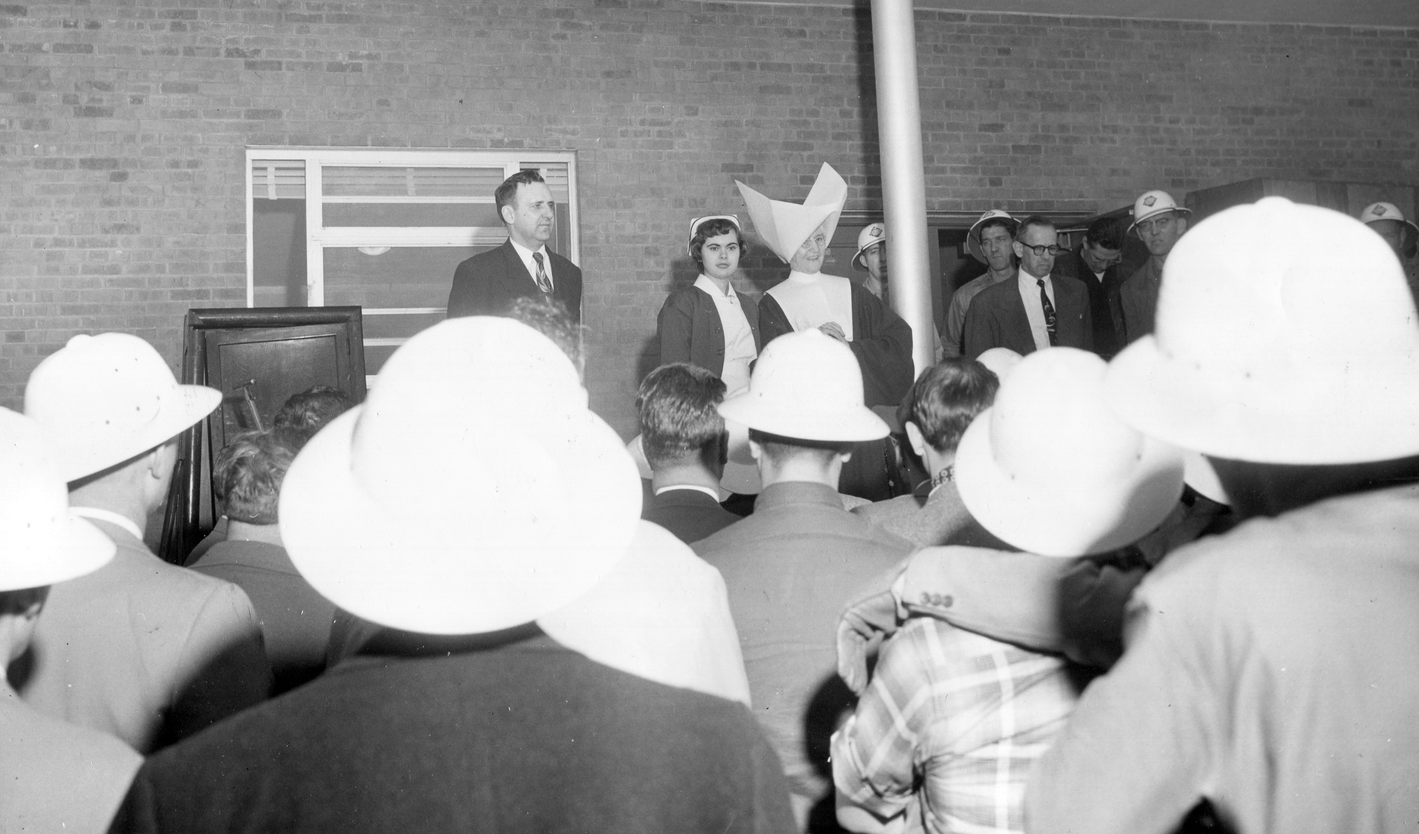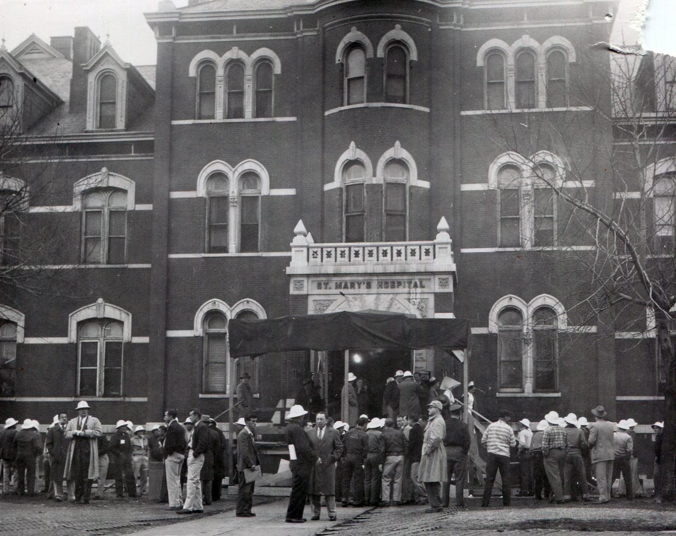 For Throwback Thursday, we present a series of pictures from St. Mary’s Hospital in Evansville. In 1956 the Sisters moved into a new and expanded St. Mary’s, a process which required the efforts of Sisters, hospital staff, students from the St. Mary’s School of Nursing, a large number of lay workers, a fleet of moving vans, and Indiana Civil Defense personnel to provide security and direct traffic. In addition to beds, furniture, and equipment such as operating tables and x-ray machines, 97 patients were moved from the old hospital to the new. The local media reported that moving the patients was accomplished in under 2 hours and went “like clockwork”.