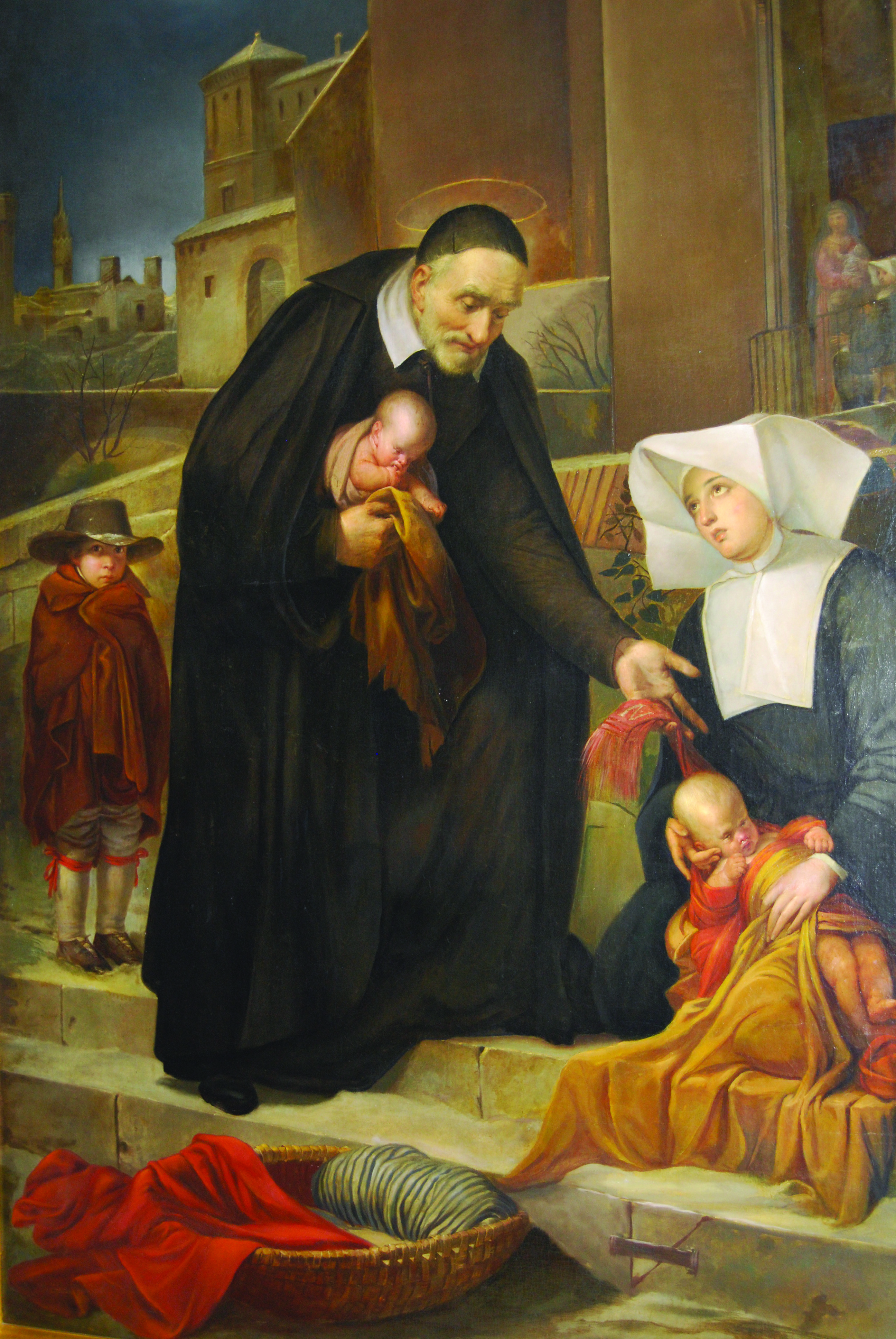 There is one piece saved in the Seton Shrine that is incredibly beautiful: the painting, “Saint Vincent de Paul” by Pietro Gagliardi (c. 1843). This artwork caught my attention due to its size, quality, and history behind it. Gagliardi’s piece is large enough to almost fill up the wall from which it is propped on, over 9 feet high and 6 feet wide! I could only imagine the amount of time and effort used for the sake of this piece—even the care it took to transfer the piece to this Seton Shrine. Quality was top priority as well; there is little damage seen on this piece. Such noticeable dedication archivists have implemented into this piece brings me hope that I one day get to preserve such pieces related in my own historical sub-field.
