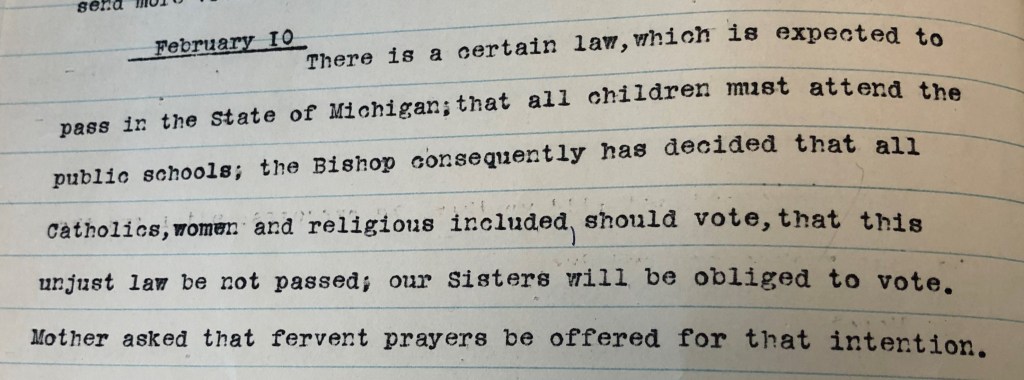 When similar movements began to pop up in his own Archdiocese of Baltimore, Cardinal Gibbons made a very quick turnaround. Realizing the need to organize and the potential for women to have a say in the direction of the country, references in the Daughters archives in 1920 and 1921 look very different from the decade beforehand. In part three of this series, we will look at the accounts of the Daughters of Charity voting for the first time.
