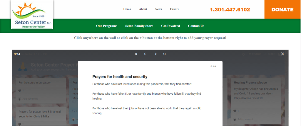 - Seton Center here in Emmitsburg has a virtual prayer wall. The archives began to collect Seton Center’s web presence in June 2020, not aware that the prayer wall was going to be part of the collection. It captures the thoughts and feelings of patrons of Seton Center who are navigating a frightening new time.