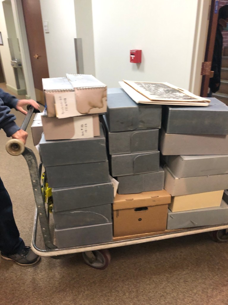 After two weeks in quarantine, we have seen no signs of mold or pests, and we have allowed any chance of COVID on the boxes to die off. We may not get to processing this material for some time, but once we do, we will determine whether we can add this material to the current Carney collection — with a note documenting that it came long after the creation of the initial Carney collection, and with a note of thanks to everyone who made it possible — or if it warrants a complete re-processing of the collection.