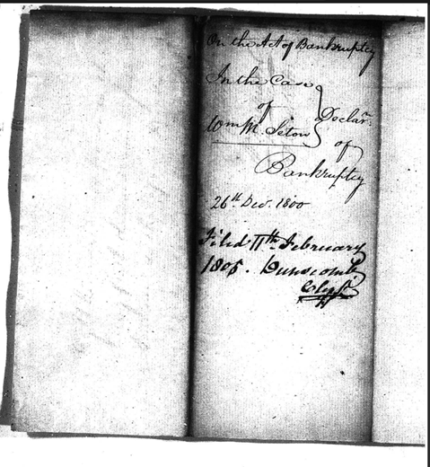 As an example of records which need to be visited in-person, these scans were lent to us by our friend and colleague Dr. Catherine O’Donnell and come from the National Archives branch in Kansas City, where Record Group 21 “Records of District Courts of the United States” reside. Less than 0.5% of these records are scanned and online as of this time, but among them are early records of the United States bankruptcy court. It is in these documents that the Setons’ life in New York City began to unravel, as the Seton-Maitland shipping company ran out of money, and the Setons were forced to sell their assets.