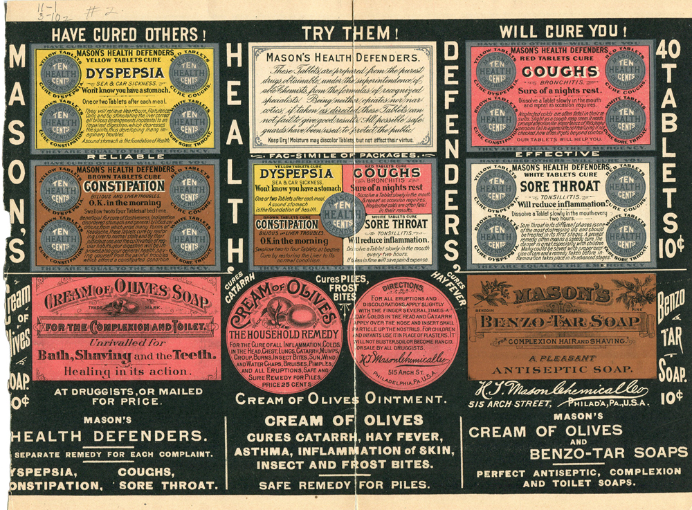 The Daughters of Charity have been caring for the sick since 1633, and they have witnessed many advances in medicine. Recently, While arranging and describing the records of a mission in Philadelphia, we came across this ad for “Mason’s Health Defenders”. We do not know whether the Daughters ever used this medicine in their work, nor do we have any information about the effectiveness of these medicines. However, advertisements like this are an interesting window into 19th-century medical practices.