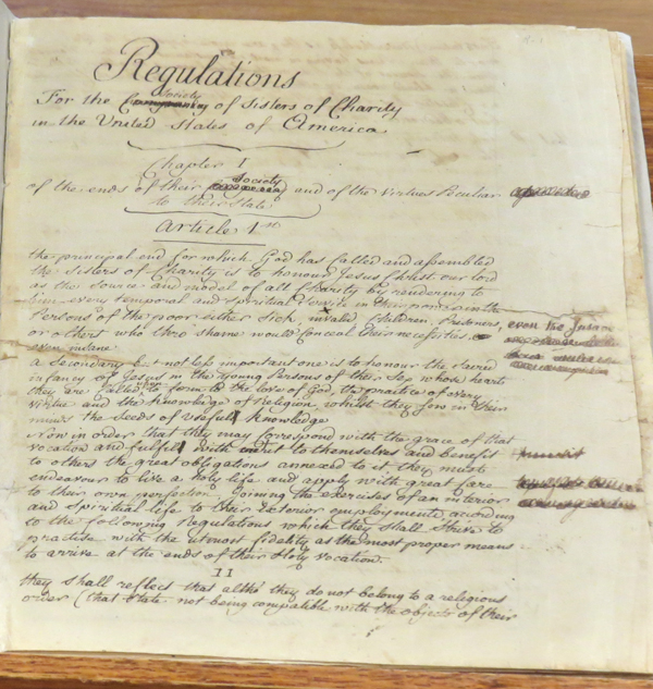 In recent weeks we’ve shared with you our efforts, working with conservator Mary Wootton, to preserve one of the most historically valuable items in our collection: The Regulations for the Society of Sisters of Charity in the United States of America, commonly known as the American Rule of 1812.