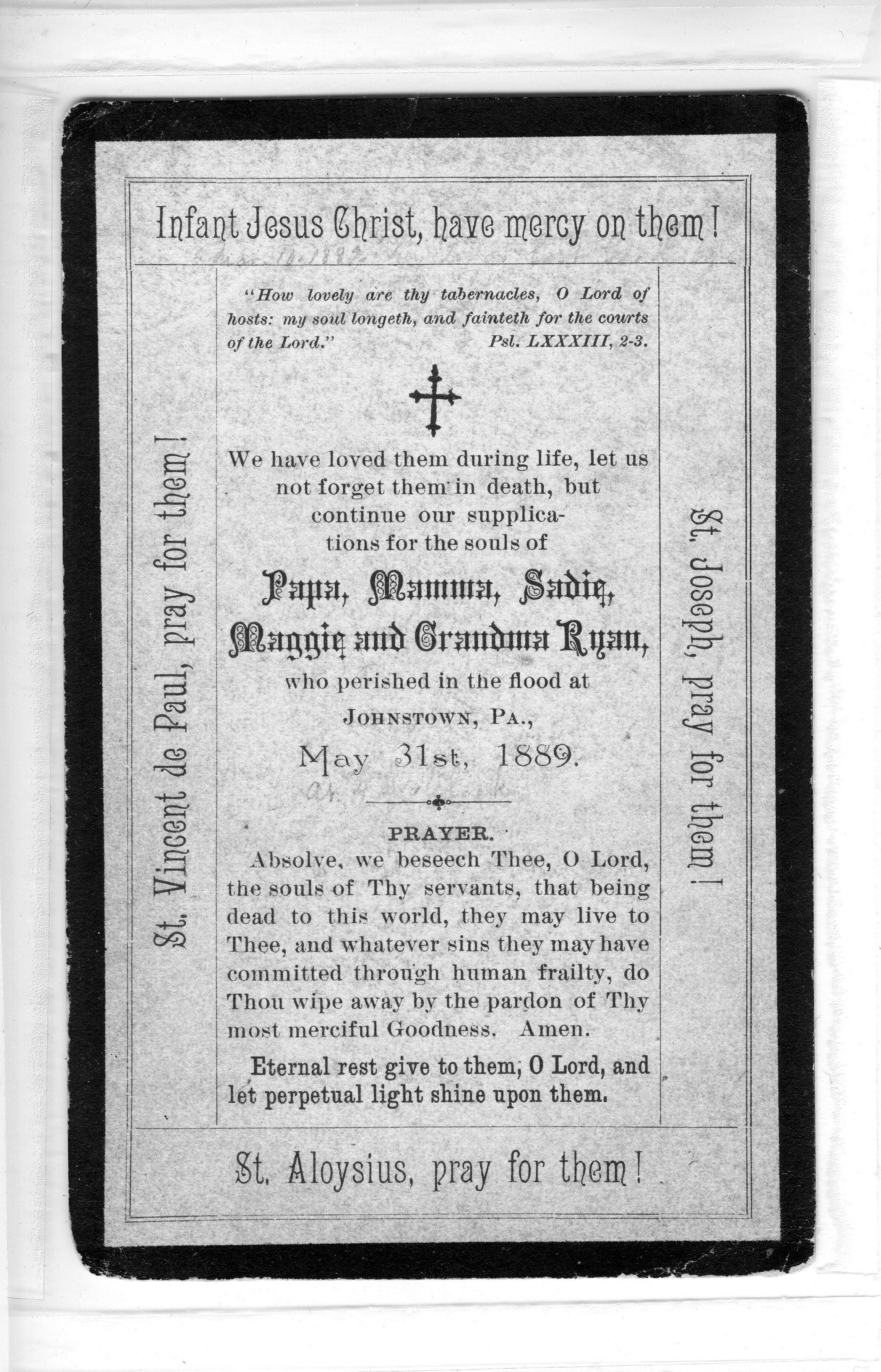 Some weeks later, Sister Aloysius wrote a letter to her mother describing “Johnstown’s Black Friday” as she called it. Her letter is preserved in her file in the Sisters of Charity of Seton Hill Archives.