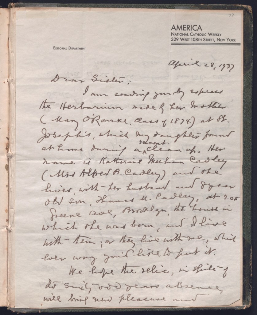 Along with our partners at The National Shrine of Saint Elizabeth Ann Seton, the Archives has curated a set of student notebooks from students of St. Joseph’s Academy. We even made some copies so you can see more than the page that is on display! Stop by the entry hallway to the Basilica to see them!